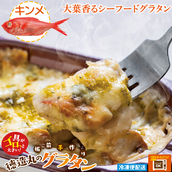 【商品内容】金目鯛のテリヤキグラタン、フレッシュトマトソースのグラタン、大葉香るシーフードグラタン